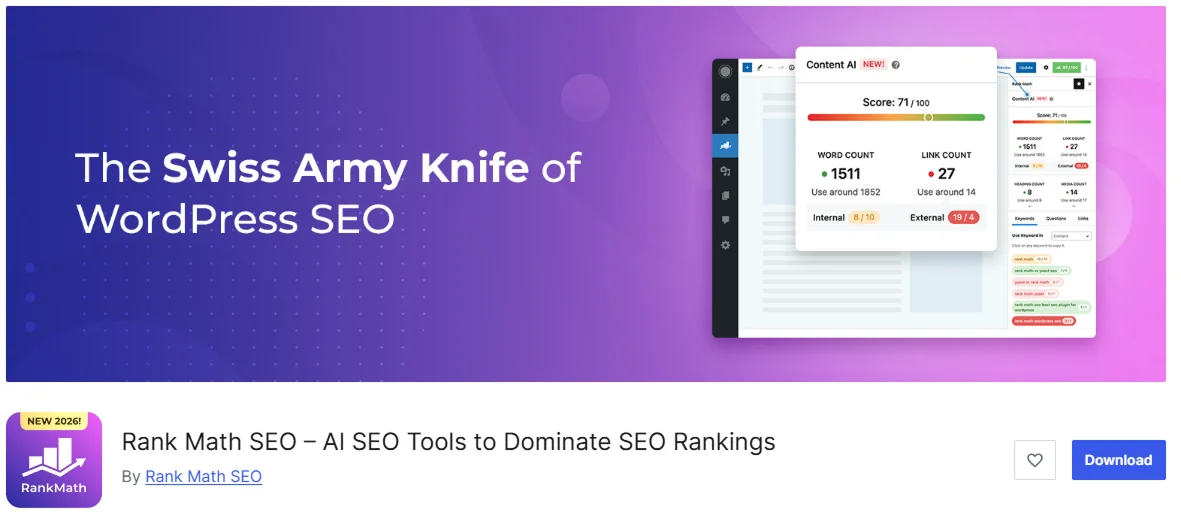 With over 3 million active installations, Rank Math leads the pack for AI-powered WordPress SEO.