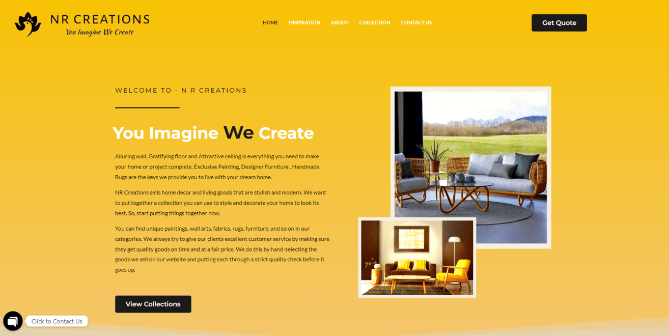 1. Product Showcase: We designed an aesthetically pleasing and organized website that effectively showcased N R Creations’ wide range of home decor and living goods. High-quality images and visually appealing displays were incorporated to attract customers.