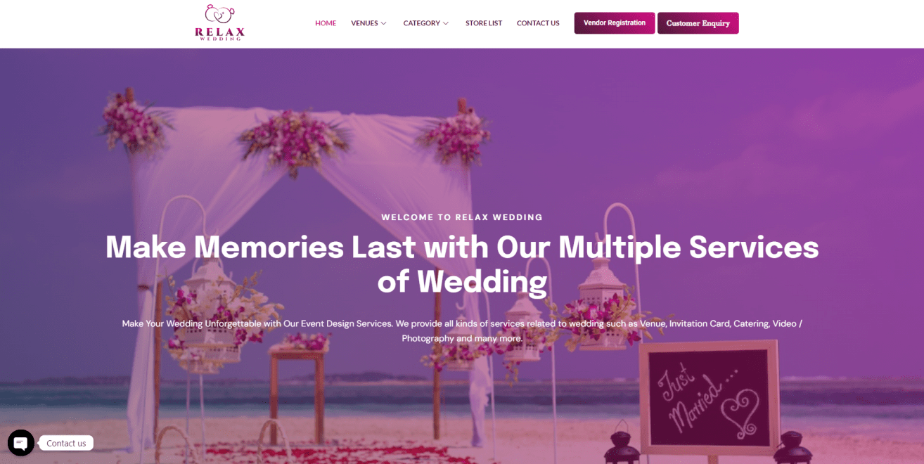Objective: Relax Wedding, a platform offering event design services for weddings, engaged Ali Web Design to create a sophisticated and user-friendly multivendor website. The goal was to provide a platform where multiple vendors could register and list their wedding-related services, making it easier for couples to plan their special day.